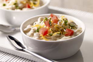 SERVE topped with shredded cheese, tomatoes and cilantro.