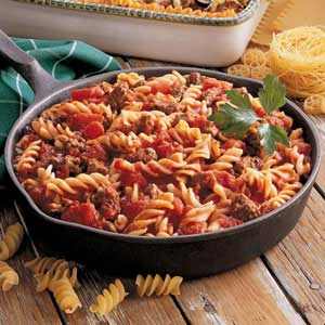 In a large skillet or Dutch oven, cook beef and onion over medium heat until the meat is no longer pink; drain. Stir in the tomatoes, pasta, salt, sugar, chili powder and garlic powder. Bring to a boil. Reduce heat; cover and simmer for 25-30 minutes or until pasta is tender. Yield: 4-6 servings.