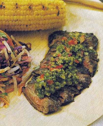 Prepare a gas or charcoal grill for high heat (450 to 550). Grill steak over direct heat (cover if using gas), about 4 min per side for medium-rare. Let sit 10 minutes, then cut across the grain into 1/2 inch thick slices. Serve with Four-Herb Chimichurri.