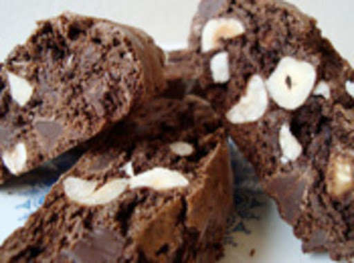 4.Fold the hazelnuts and chocolate chips into the dough, and mix until evenly distributed. The dough will be thick and hard to stir. If it is too sticky, chill briefly.
