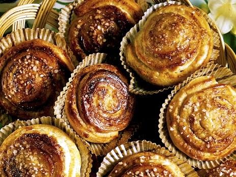 1. Smält smöret och tillsätt mjölken. Värm till 37°. Rör ut jästen. Arbeta in övriga ingredienser, till sist så mycket mjöl att degen blir smidig. Dela degen och kavla genast ut den till avlånga plattor på mjölat underlag.