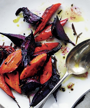 1.Heat oven to 450° F. Toss the beets, carrots, vinegar, oil, rosemary, ¾ teaspoon salt, and ¼ teaspoon pepper on a rimmed baking sheet. Roast, tossing once, until the vegetables are tender, 30 to 35 minutes.