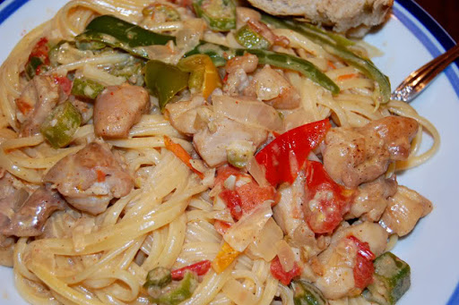 Place the chicken and the Cajun seasoning in a plastic bag. Shake to coat. In a large skillet over medium heat, saute the chicken in butter or margarine until almost tender (5 to 7 minutes).