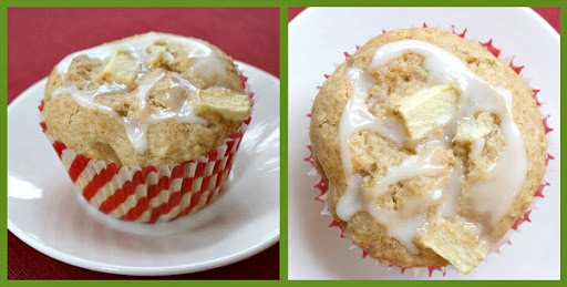 6. Combine glaze ingredients, stirring with a whisk until smooth. Drizzle 1/2 teaspoon glaze over each muffin. Serve warm.