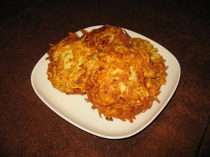 Serve warm topped with sour cream, applesauce, and chives to taste.