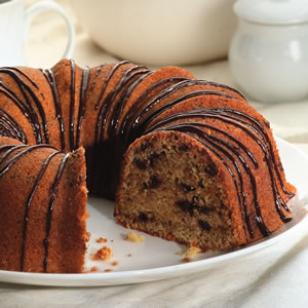 To prepare chocolate drizzle: Combine 1/3 cup chocolate chips and milk in a small saucepan. Heat over low heat, stirring, until the chocolate is melted and the mixture is smooth. Drizzle over the cooled cake. Serve immediately or let stand until the chocolate is set, about 45 minutes.
