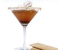 Lightly outline the rim of martini glass with whipped cream, and finish by dipping in graham cracker crumbs. Set aside. Fill martini shaker half way up with ice, combine all ingredients and shake until chilled. Pour into martini glass, and enjoy.
