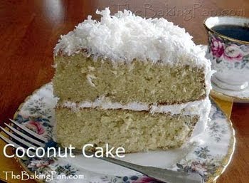 6. With the mixer on low speed, add about one third of the flour mixture, mix just until the flour is almost completely blended. Scrape the bowl down, and add about one half of the coconut milk mixture, blending just until mixed. Scrape the bowl down again and continue alternating with the flour mixture and coconut milk mixture, ending with the last portion of the flour, and stirring just until blended. Gently fold the coconut into the batter.