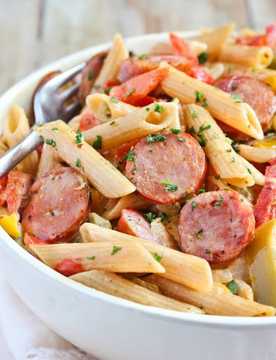 Spicy Sausage & Mixed Vegetable Skillet Pasta