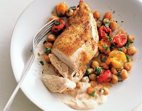 Roast Chicken Breasts with Garbanzo Beans, Tomatoes, and Paprika