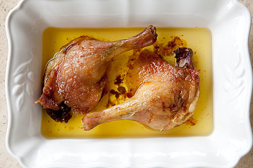 * Lift the duck pieces out of the fat, removing as much as possible.