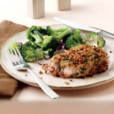 Herb-Crusted Pork Chops with Broccoli & Onions