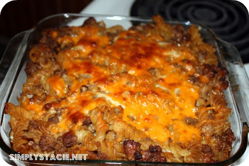Return drained pasta to the saucepan. Stir in remaining ingredients except ½ cup of the cheddar cheese. Spoon into a casserole dish. Sprinkle with remaining ½ cup of cheddar cheese.