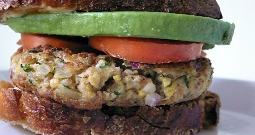 Serve veggie burgers on a platter with grilled bread, foccacia or buns and a choice of the following fixins’: mayo, ketchup, sliced tomato, mustard, avocado, sliced onion, greens.