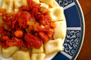 6 Bring at least 6 quarts of salted water to a boil in a shallow saucepan. Gently drop the gnocchi, a few at a time, into the water. As soon as they rise to the surface, remove them with a slotted spoon, draining well. Arrange on a warm serving dish. Continue cooking the gnocchi in the same manner.