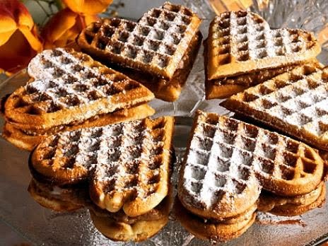 2. Hetta upp våffeljärnet med lite smör och grädda våfflorna. Lägg de färdiga våfflorna på galler så att de behåller frasigheten, trava upp dem i ”torn” först vid serveringen.