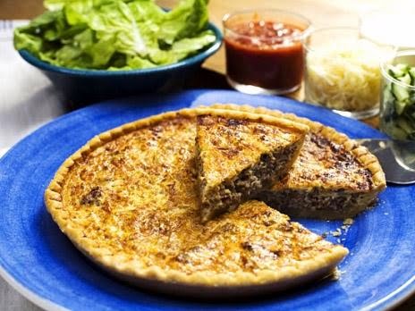 Vanlig köttfärspaj blir extra festlig med mexikanska kryddor och fräscha tillbehör.