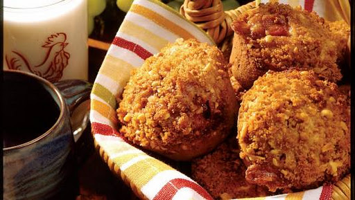 A moist muffin, topped with sweet brown sugar, cinnamon, and nuts for a sweet crunch