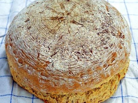 5. Stjälp ut brödet på en plåt. Grädda det i ca 40 minuter i nedre delen av ugnen. Låt brödet svalna på galler.