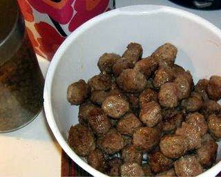 Börja med att skära baconet i bitar och köra det till en massa i matberedaren. Skala och hacka löken och bryn den försiktigt i lite smör. Blanda ner den avsvalnade löken, havregrynen och grädden med baconet och kör en stund. Låt dra 5 min. Stöt kryddpepparn fint i mortel. Tillsätt alla kryddor samt honung till baconsmeten och därefter köttfärs och ägg. Blanda noga. Sedan är det bara att rulla bullar och steka på valfritt sätt. Exempelvis i ugnen 175-200 grader 20-30 min.