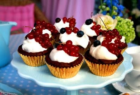 8. Garnera med en klick lättvispad grädde och färska bär.