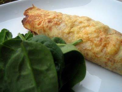 Blanda ihop alla ingredienserna till fyllningen. Fyll sedan pannkakorna och rulla ihop. Lägg på en ugnssäker form, strö över osten och gratinera i ugnen (250 grader) ca 10 minuter eller tills de fått fin färg.