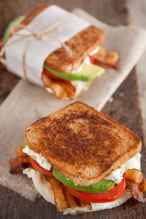 In same small skillet, fry the eggs in reserved bacon grease over medium-low heat. Crack the yolks and flip. Place each egg on top of 2 pieces of toast. Cover each egg with 2 slices of bacon, 2 slices of tomato, and 2 slices of avocado. Top with another piece of toast and serve immediately.