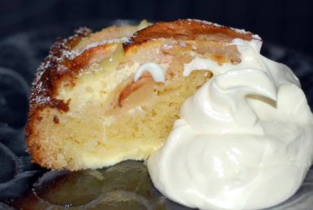 Tips: man kan nog med fördel smaksätta kakan lite mer genom att antingen ha i färsk vanilj i kakan eller pudra över lite kanel på äpplena.