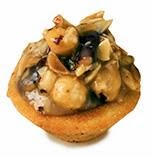 8. När toscan är färdig blandas nötterna i. Låt smeten svalna lite, och skeda sedan upp på de bakade små mazarinerna. Lättast är att ta två skedar till hjälp. Sedan kan de formas så att de blir toppiga och fina.