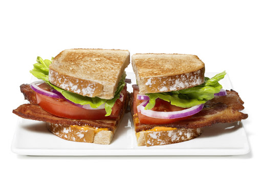 Make the sandwiches: Lay 4 slices of bread on a cutting board. Spread 2 to 3 teaspoons or so of the aioli on each slice, then top each with 8 half-pieces of bacon, a few slices of tomato, some red onion and a single piece of lettuce. Top each with another slice of bread. Slice the sandwiches in half.