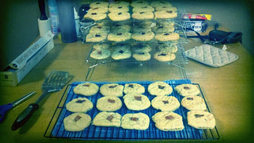 Cool on the cookie sheets while you clear off a place for the cookies to cool down further.