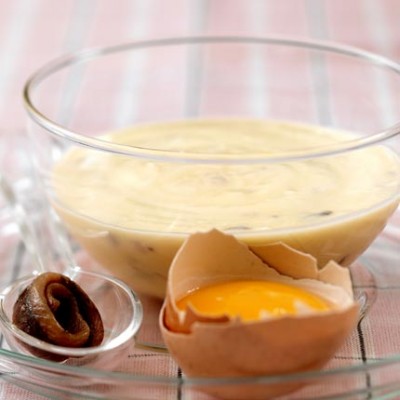 Vierta el aceite en hilillo fino, sin dejar de batir hasta que quede fino y cremoso.