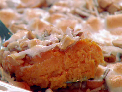 In a small bowl, toss together the cashews, marshmallows, and coconut. Remove the casserole dish from oven and top with the cashew mixture. Bake until the marshmallows are lightly toasted, about 5 to 10 more minutes. Remove the casserole from the oven and let cool for 5 minutes before serving.