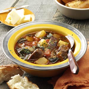 In a Dutch oven, brown beef in oil in batches. Remove and keep warm. In the same pan, saute onion until tender. Add garlic; cook 1 minute longer.