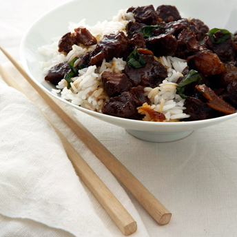 Cooking meat in caramel sauce is a popular technique in Vietnam; the sweet/bitter sauce makes a perfect foil for slow-braised pork. This is traditionally made in a clay pot, but a heavy saucepan or small Dutch oven also works well. The relatively large amount of fish sauce is important for the flavor of the dish. Serve the pork over white rice.