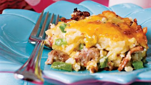 2. Combine sausage, bacon, potatoes, pepper, onions