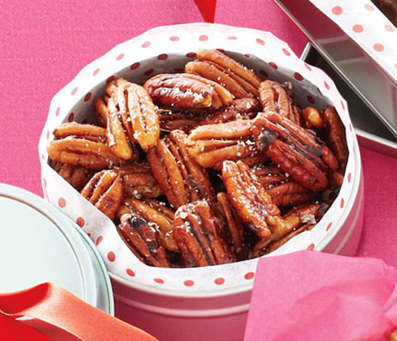 Add 2 cups pecan halves; cook, stirring, until pecans are thickly coated, about 3 minutes. Spread evenly on a baking sheet lined with parchment paper; sprinkle with 1/4 teaspoon kosher salt. Bake until fragrant and crisp, 8 to 10 minutes.