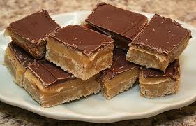 4. Place chocolate in a microwave-safe bowl. Heat for 1 minute, then stir and continue to heat and stir at 20 second intervals until chocolate is melted and smooth. Pour chocolate over the caramel layer and spread evenly to cover completely. Chill. Cut into 1 inch squares.