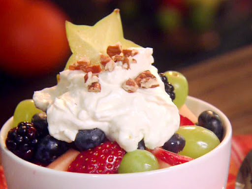 In a serving bowl, combine the blueberries, blackberries, cantaloupe, grapes, strawberries, and starfruit.