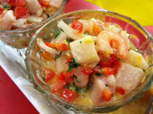 CEVICHE THAI CON LECHE DE COCO Y FRUTAS
