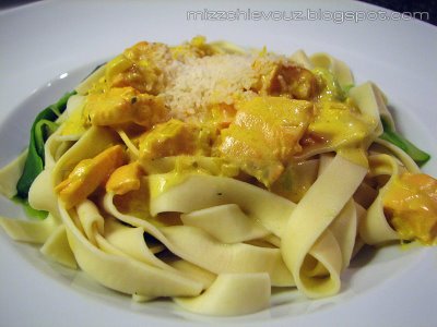 Salmon and Zucchini Fettuccine in Saffron Cream Sauce