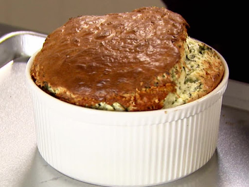 Preheat the oven to 400 degrees F. Butter the inside of a 6 to 8-cup souffle dish (6 1/2 to 7 1/2 inches in diameter by 3 1/2 inches deep) and sprinkle evenly with Parmesan.