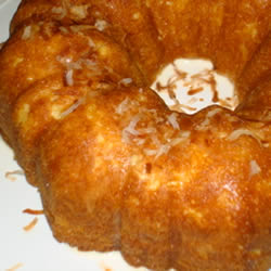 Pile the topping on top of the cake and sprinkle with toasted coconut.