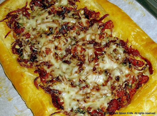 Pastrizza -Caramelised Onions and Sausage with a Dijon and Jarlsberg Spread