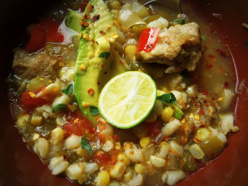 Slow-Cooked Pork Tomatillo Soup With Corn & Hominy