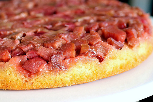 Pour cake mix batter over rhubarb and carefully smooth top with back of a wooden spoon. Bake until a toothpick inserted in center comes out clean, about 1 hour.