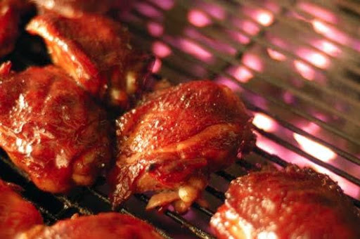 Preheat grill on high. Place chicken thighs in large ziploc bag and pour BBQ sauce in to coat. Seal bag and shake chicken until thoroughly coated.