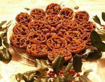 5) Heat the Vin Cotto in a pan and while the Vin Cotto is still warm, dip each Cartellata in the Vin Cotto until it is completely covered. Drain any excess juice and place in a platter for storage. Before serving add a sprinkle of cinnamon. If you do not have Vin Cotto, you can substitute it with honey.
