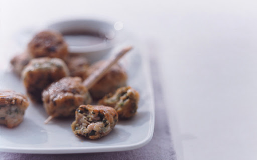 Spread cornstarch in a shallow baking pan. With wet hands form chicken mixture into 1-inch balls, transferring them to baking pan as formed. Wash and dry your hands, then gently roll balls in cornstarch until coated. (Balls will be soft.)