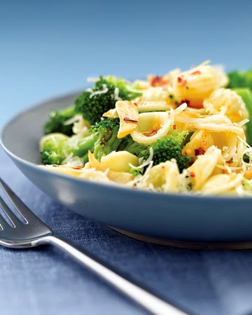 3. To pasta in pot, add broccoli mixture, Parmesan (reserving some for later), and enough pasta water to create a thin sauce that coats pasta. Serve sprinkled with remaining Parmesan.